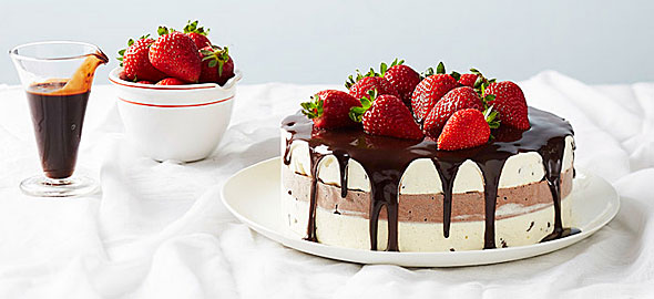 Χύνετε το παγωτό στο τσέρκι πάνω στην παγωμένη βάση. Βάζετε την τούρτα στην κατάψυξη.