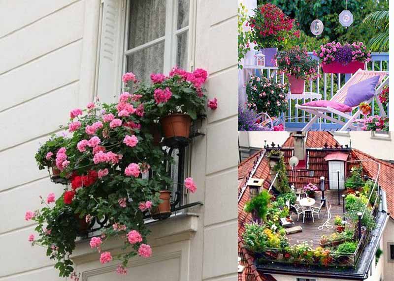 Λουλούδια παντού! Στις γλάστρες, στο κάγκελο του μπαλκονιού, κρεμαστά από το ταβάνι, πάνω στα τραπεζάκια, και το μπαλκόνι(μικρό ή μεγάλο) γίνεται κήπος μες στην πόλη!
