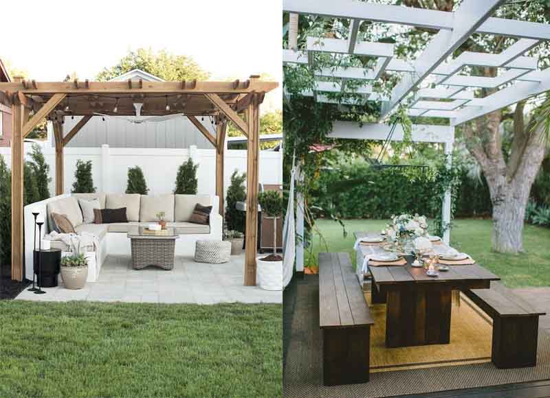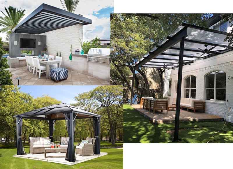 Γυαλί, μέταλλο, ξύλο ή ύφασμα είναι μερικά από τα βασικά υλικά που μπορείς να χρησιμοποιήσεις. Στην αγορά υπάρχει μεγάλη ποικιλία από έτοιμα γκαζέμπο, πέργκολες ή κιόσκια. Αν, όμως, "πιάνουν" τα χέρια σου, μπορείς να φτιάξεις μια κατασκευή δικής σου επινόησης που θα εξυπηρετεί τέλεια της ανάγκες σου.