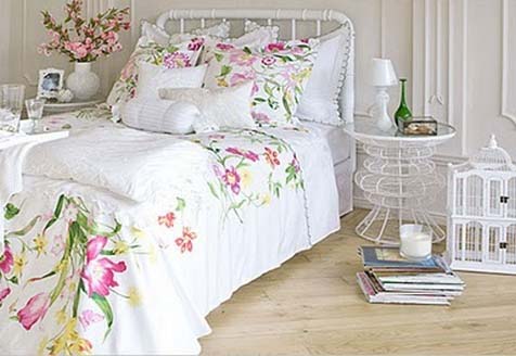 Στο υπνοδωμάτιο, εκτός από το κλασσικό λευκό, δώστε την πρωτοκαθεδρία και στα φλοράλ μοτίβα. Το πολύχρωμο καλοκαίρι δίνει κι εδώ το στίγμα του.
