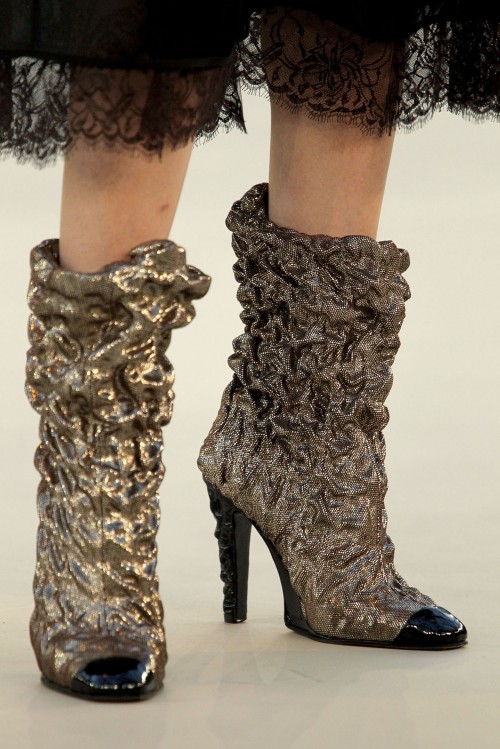 Όσον αφορά στα παπούτσια, η ποικιλία δε θα αφήσει καμιά μας ασυγκίνητη. Μποτάκια, ψηλές μπότες, κλασσικές γόβες και φυσικά αρκετό άνιμαλ πριντ θα στιγματίσουν κάθε μας βήμα.