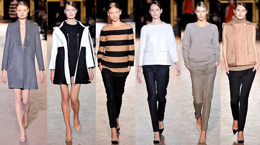 Τα 4 χρώματα που θα πρωταγωνιστήσουν είναι τα: μαύρο, γκρι, καμηλό και κόκκινο. Ξεχάστε τη δυναμική του ροκ από τις προηγούμενες σεζόν και στραφείτε στο μινιμαλισμό. Το μόνο σταθερό σημείο παραμένει το άνιμαλ-πριντ ενώ στην πρώτη γραμμή φιγουράρουν το κλασσικό παλτό, τα βελούδινα και τα πλεκτά. Το γενικό πρόσταγμα είναι: ό,τι κι αν φορέσετε, δείξτε ενήλικη. Κοστούμια σε ίσια γραμμή, φούστες ρετρό, πλεχτά πουλόβερ με φαρδύ ζιβάγκο, αυστηρά ψηλόμεσα παντελόνια έκαναν την εμφάνισή τους στις πασαρέλες διεθνώς. Παρότρυνση όλων των μεγάλων σχεδιαστών: "το βελούδο δεν το φοράμε μόνο τα Χριστούγεννα. Το φοράμε όλο το χρόνο!"