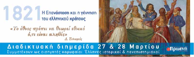 Η εφημερίδα «Πρωινή» της Ηλείας, θέλοντας να συμβάλει στη δημόσια συζήτηση για το 1821 και την Εθνική Παλιγγενεσία, διοργανώνει διαδικτυακή διημερίδα με θέμα «1821: Η Επανάσταση και η γέννηση του ελληνικού κράτους». Η εκδήλωση θα πραγματοποιηθεί το Σαββατοκύριακο 27 & 28 Μαρτίου, με τη συμμετοχή κορυφαίων ιστορικών, πανεπιστημιακών και συγγραφέων της χώρας, οι οποίοι θα καλύψουν όλο το φάσμα της Επανάστασης.