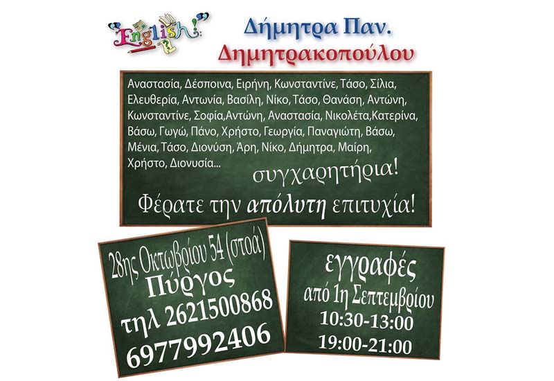Αγγλικά Δήμητρα Παν. Δημητρακοπούλου: Στην κορυφή της επιτυχίας και φέτος