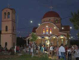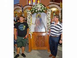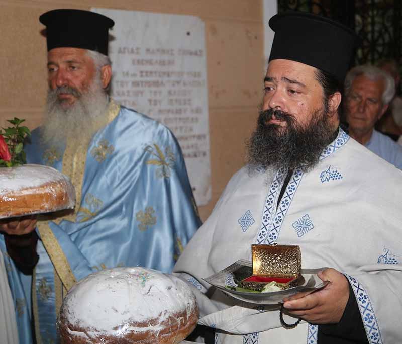 ραμονή της εορτής τελέσθηκε ο Μέγας Πανηγυρικός Εσπερινός μετ’ αρτοκλασιών και Θείου Κηρύγματος υπό του Ιεροκήρυκος της Ιεράς Μητροπόλεώς μας Πανοσιολογιοτάτου Αρχιμανδρίτου π. Φιλαρέτου Σπανοπούλου, συνεπικουρούμενου υπό των Αιδ. π. Χαραλάμπου Δέρβου, π. Ανδρέου Μπουγιουκλή, π. Αγγέλου Πανάγαρη, π. Αναστασίου Τσαμαδού, π. Νικολάου Κατσηδήμα, π. Θωμά Βαρβαρήγου, π. Διονυσίου Σπεντζάρη και π. Γεωργίου Χαρδαβέλα. Ακολούθησε η λιτάνευση της σεπτής εικόνας στους δρόμους του Μικρασιατικού αυτού Δημοτικού Διαμερίσματος.
