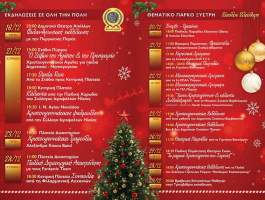 Με ελεύθερη είσοδο, το Πάρκο θα υποδέχεται καθημερινά το κοινό, από τις 20 Δεκεμβρίου έως και τις 4 Ιανουαρίου, μετατρέποντας την περιοχή σε έναν παραμυθένιο προορισμό. Στο επίκεντρο της γιορτής θα βρίσκονται το καρουζέλ και το παγοδρόμιο, ενώ η Χριστουγεννιάτικη άμαξα και το γιορτινό χωριό του Άγιου Βασίλη και των ξωτικών υπόσχονται στιγμές αστείρευτης χαράς. Καλαίσθητα, στολισμένα σπιτάκια έχουν πάρει τη θέση τους στον περιβάλλοντα χώρο του πάρκου, ενώ ετοιμάζεται και η μεγάλη αίθουσα εκδηλώσεων για τα εορταστικά events.