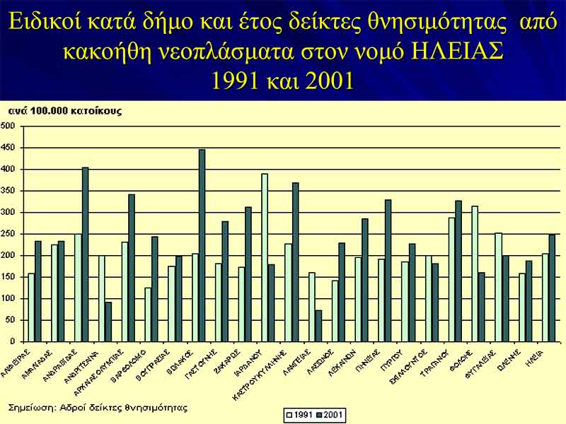 • Καταγραφή της Θνησιμότητας από κακοήθης νεοπλασίες στην Περιφέρεια Δυτικής Ελλάδος την περίοδο 1991-1992 και 1999-2001