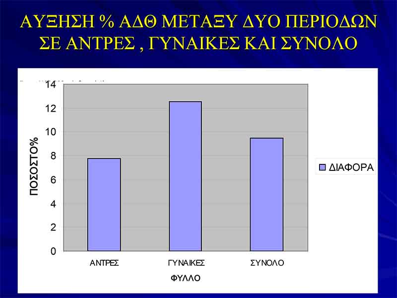 • Υπάρχει αυξημένη θνησιμότητα ανδρών έναντι των γυναικών .