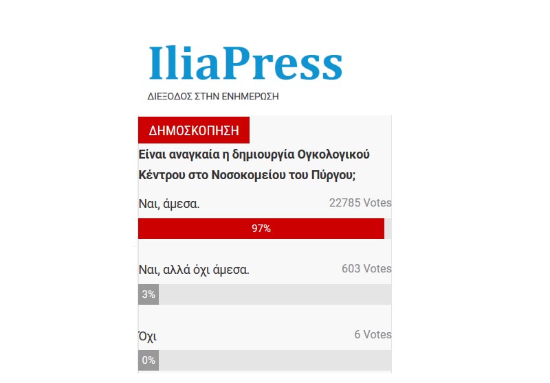 Οι αναγνώστες του IliaPress θέλουν Ογκολογικό Κέντρο στο Νοσοκομείου Πύργου