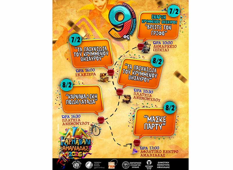 Ξεκινάει το ανανεωμένο 2ο παιχνίδι του «Κρυμμένου Θησαυρού», στο πλαίσιο του Καρναβαλιού Αμαλιάδας 2026