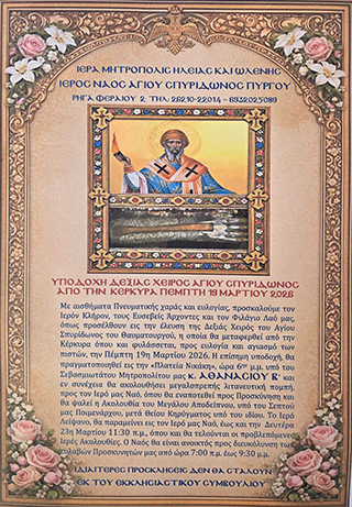 Έλευση Δεξιάς Χειρός Αγίου Σπυρίδωνος από την Κέρκυρα στον Πύργο