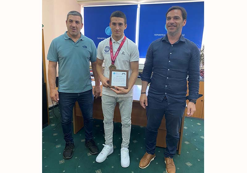 Ο Αντιπεριφερειάρχης Αθλητισμού, Εθελοντισμού και Ολυμπισμού Δημήτρης Νικολακόπουλος βράβευσε τον Έλληνα Πρωταθλητή του Πανευρωπαϊκού Πρωταθλήματος U17 Ελληνορωμαϊκής Πάλης, Αρίωνα Κολιτσόπουλο μετά την επιστροφή του στην Ελλάδα από το Βουκουρέστι, όπου και διεξήχθη το Πρωτάθλημα, στο οποίο ο Αντιπεριφερειάρχης συνόδευσε την αποστολή της Ελληνικής ομάδας ως επίσημος προσκεκλημένος της Παγκόσμιας Ομοσπονδίας.