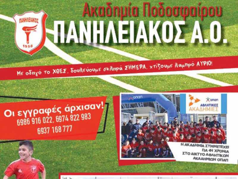 Η Ακαδημία ποδοσφαίρου Πανηλειακού στον Πύργο, με οδηγό την πολύχρονη εμπειρία, την άψογη συνεργασία με αθλητές και γονείς, την άρτια παιδαγωγική καθοδήγηση και με εξειδικευμένο Προπονητικό και Επιστημονικό Επιτελείο, ξεκινάει μια νέα αγωνιστική σεζόν που “ευελπιστούμε ότι και αυτή η αγωνιστική χρονιά θα είναι γεμάτη από επιτυχίες σε όλους τους τομείς”, όπως τονίζεται.