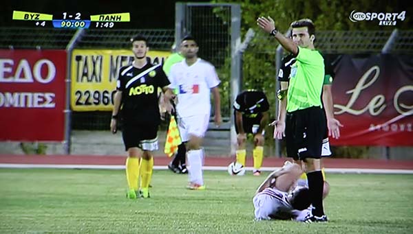 Μέχρι τώρα εχθρική η διαιτησία απέναντι στον Πανηλειακό, αφού έχει "κιτρινίσει" τρεις παίχτες του Πανηλειακού και ανέχεται το σκληρό παιχνίδι των γηπεδούχων.
