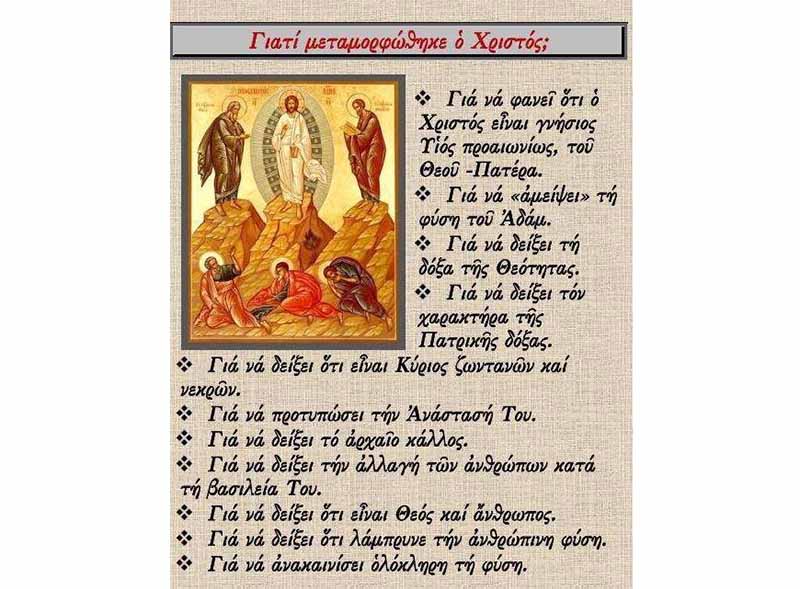 6 ΑΥΓΟΥΣΤΟΥ Η ΘΕΙΑ ΜΕΤΑΜΟΡΦΩΣΙΣ ΤΟΥ ΣΩΤΗΡΟΣ ΧΡΙΣΤΟΥ!