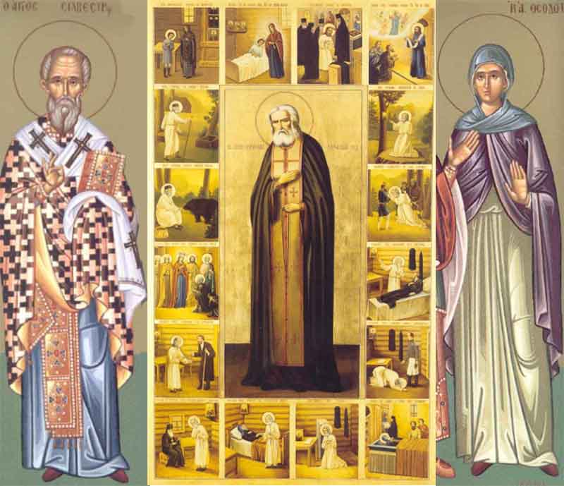 2 Ιανουαρίου - Άγιος Σίλβεστρος Πάπας Ρώμης, Όσιος Σεραφείμ του Σαρώφ, Αγία Θεοδότη μητέρα των Αγίων Αναργύρων, Άγιος Θεαγένης ιερομάρτυρας , Άγιος Θεόπεμπτος, Όσιος Μάρκος ο κωφός, Άγιος Βασίλειος μάρτυρας εξ Άγκυρας, Άγιος Σέργιος , Άγιος Θεόπιστος, Άγιος Κοσμάς ο Α' Αρχιεπίσκοπος Κωνσταντινούπολης , Άγιος Γεώργιος (ή Ζώρζης ή Γκιουρτζής) ο Ίβηρ, Όσιος Σίλβεστρος Ρώσος της Λαύρας του Κιέβου, Άγιος Ισίδωρος ο Ιερομάρτυρας, Οσία Ιουλιανή η Δικαία, Όσιος Νείλος ο Ηγιασμένος και Όσιος Γεννάδιος Κερκύρας