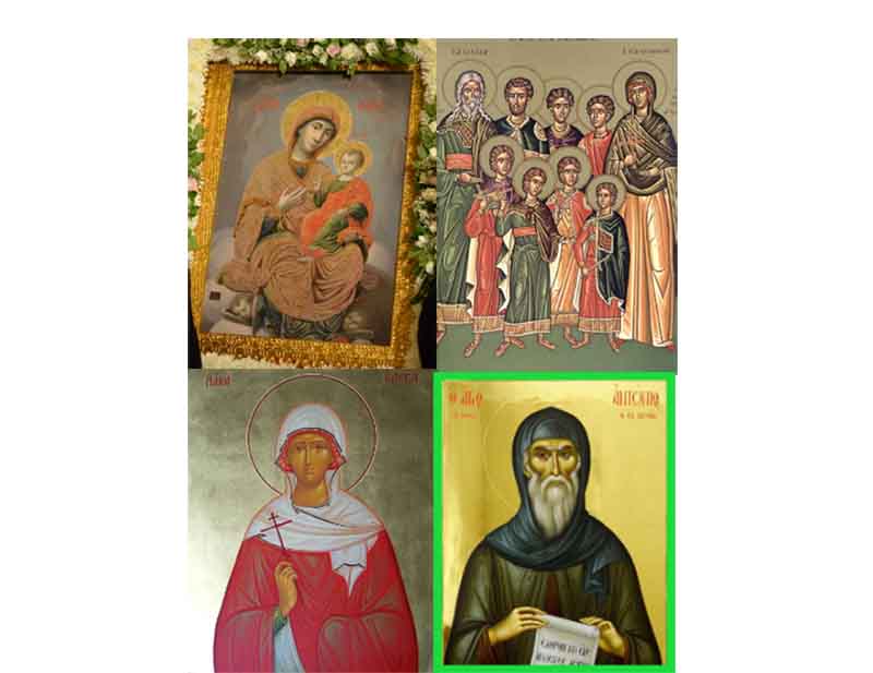 1 Αυγούστου - Πρόοδος του Τιμίου και Ζωοποιού Σταυρού, Άγιοι Επτά Μακκαβαίοι, η μητέρα τους Σολομονή και ο διδάσκαλός τους Ελεάζαρος, Αγία Ελέσα Οσιομάρτυς που μαρτύρησε στα Κύθηρα, Όσιος Αντώνιος ο νέος ο Θαυματουργός, Σύναξη της Παναγίας Ταυριώτισσας στον Ιερό Ναό του Αγίου Γεωργίου Ταύρου, Άγιοι εννέα μάρτυρες που μαρτύρησαν στην Πέργη της Παμφυλίας, Άγιος Πάπας ο νέος, Άγιος Ελεαζάρος, Άγιος Κήρυκος, Άγιος Θεόδωρος, Άγιος Πολύευκτος, Άγιος Τιμόθεος ο Θαυματουργός Αρχιεπίσκοπος Προκοννήσου, Άγιοι Μήνης και Μηναίος και οι λοιποί εν τω Βιγλεντίω, πλησίον του χαλκού Τετραπύλου και Άγιος Ethelwald