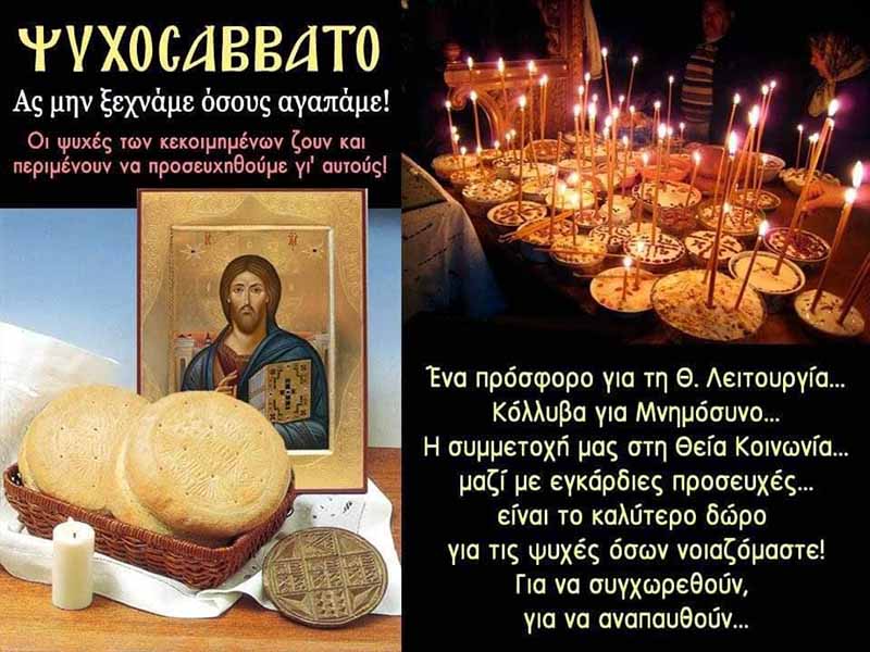 Τα Ψυχοσάββατα στην Εκκλησιαστική μας παράδοση είναι δύο: Το ένα είναι το Σάββατο πριν από την Κυριακή της Αποκριάς και το δεύτερο το Σάββατο προ της Πεντηκοστής.