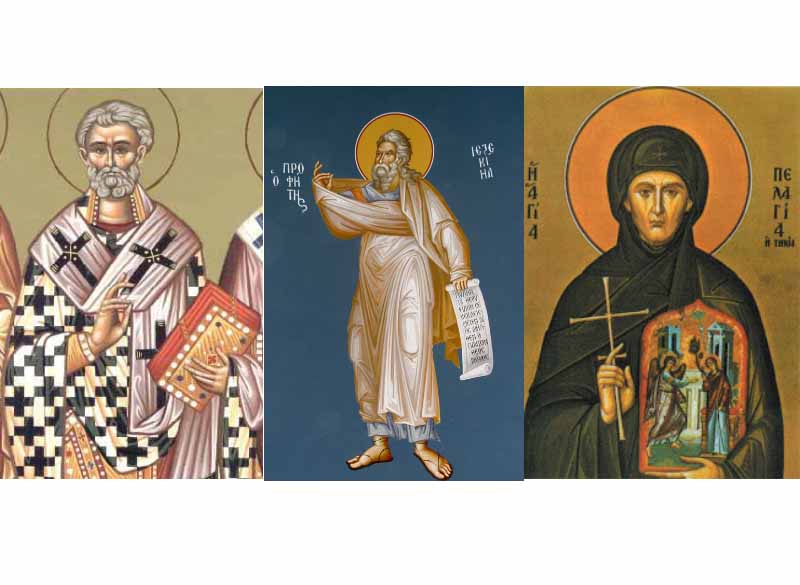 23 Ιουλίου - Ανακομιδή Ιερών Λειψάνων του Αγίου Φωκά του Νέου από τη Σινώπη, Προφήτης Ιεζεκιήλ, Οσία Πελαγία η Τηνία, Άγιος Απολλινάριος επίσκοπος Ραβέννας, Άγιος Απολλώνιος Ιερομάρτυρας επίσκοπος Ρώμης, Άγιοι Μάρτυρες που θανατώθηκαν από τους Βουλγάρους, Άγιοι Επτά Μάρτυρες που μαρτύρησαν στην Καρθαγένη, Οσία Άννα η εν τω Λευκαδίω, Άγιος Βιτάλιος που μαρτύρησε στη Ραβέννα, Άγιος Θύρσος, Σύναξη του Αγίου Ιωάννη του Βαπτιστή εν τοις Ολύμπου πλησίον του Αγίου Θωμά, Ανάμνηση των εγκαινίων του Ιερού Ναού του Αρχιστρατήγου Μιχαήλ «εν Σκάλλαις» και Άγιος Συμεών της Εμμέσας
