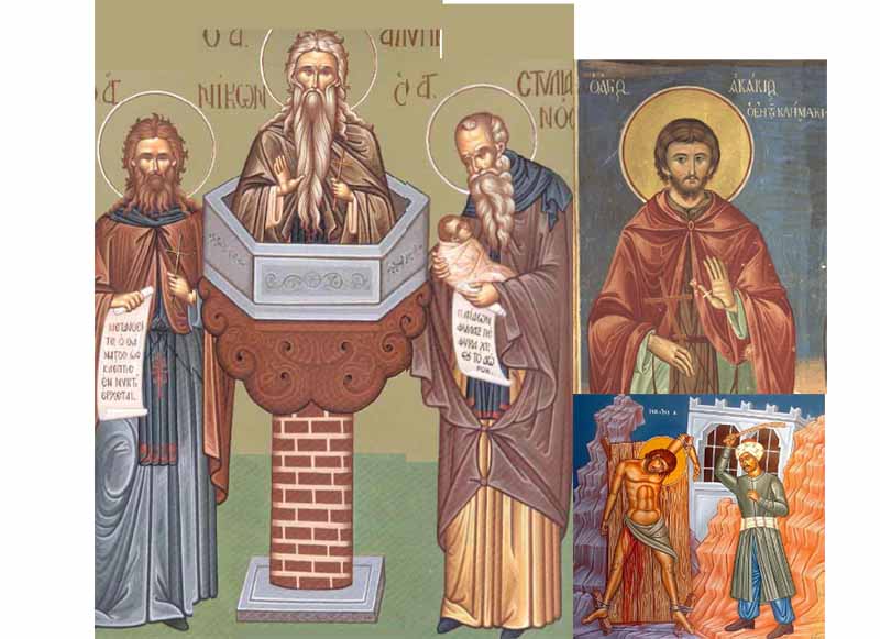 26 Νοεμβρίου - Όσιος Στυλιανός ο Παφλαγόνας, Όσιος Αλύπιος ο Κιονίτης, Όσιος Νίκων ο «Μετανοεῖτε», Άγιος Γεώργιος ο Νεομάρτυρας από τη Χίο, Όσιος Ακάκιος «ὁ ἐν τῇ Κλίμακι», Άγιος Σοφιανός επίσκοπος Δρυϊνουπόλεως καί Αργυροκάστρου, Όσιος Ιάκωβος ο Αναχωρητής, Όσιος Σίλος επίσκοπος Κορίνθου της Περσίας, Ανάμνηση των εγκαινίων του ναού του Αγίου Γεωργίου «ἐν τῷ Κυπαρίσσῳ», Άγιος Πέτρος επίσκοπος Ιεροσολύμων, Όσιος Χαιρέμων, Άγιος Ιννοκεντίος ο Θαυματουργός πρώτος επίσκοπος Ιρκούτας και Άγιος Προκόπιος ο Πέρσης