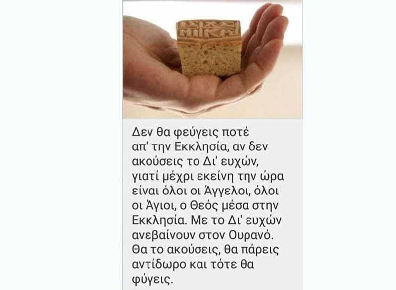 Ερώτησαν κάποιον απλό Χριστιανό, γύρω στα 55-60 χρονών ηλικία, γιατί πηγαίνει καθε Κυριακη μαλιστα απο πολυ νωρις στην Εκκλησία κι' εκείνος πολύ απλά και φυσικά τους απάντησε: Πάω για να ξεκουραστώ, για να συνέλθω. Να, όπως πάει κανείς στο μπάνιο για να πλυθεί και να καθαρισθεί, όπως να πούμε πάει κάποιος στον γιατρό για να γίνει καλά, έτσι κι εγώ πάω στην Εκκλησία για να ζήσω.