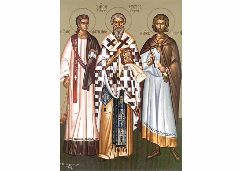10 Αυγούστου - Άγιοι Λαυρέντιος αρχιδιάκονος, Ξύστος πάπας Ρώμης και Ιππόλυτος, Άγιος Ήρων ο φιλόσοφος, Άγιοι Έξι Μάρτυρες οι εν Βιζύη, Αγία Αγαθονίκη η Παρθενομάρτυς η εν Καρχηδόνι, Άγιος Λαυρέντιος της Καλούγας και ο Νεοφανής Άγιος Ιωάννης ο Χοζεβίτης (ο Ρουμάνος)