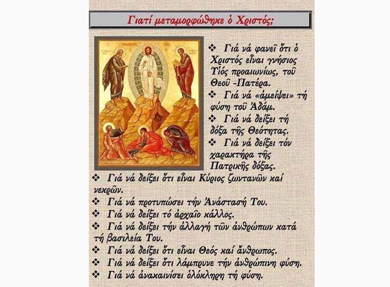 Κυριακή 6 Αυγούστου η Θεία Μεταμόρφωση του Θεανθρώπου Ιησού Χριστού