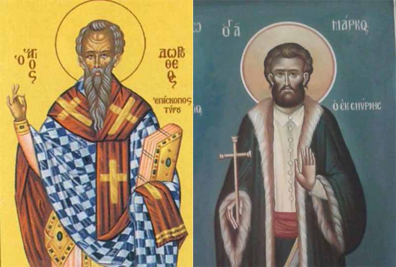 5 Ιουνίου - Άγιος Δωρόθεος Ιερομάρτυρας επίσκοπος Τύρου, Άγιος Μάρκος ο νεομάρτυρας o «ἐν Χίῳ», Άγιοι Δέκα Μάρτυρες εν Αιγύπτω, Άγιος Χριστόφορος από τη Ρώμη, Άγιος Κόνων από τη Ρώμη, Μνήμη της επενεχθείσης ημίν φοβεράς απειλής και ανάγκης, εν τη των βαρβάρων επιδρομή, Άγιος Νόννος, Άγιος Θεόδωρος Γιάροσλαβ ο Δούκας, Άγιος Boniface, Άγιος Πλούταρχος Αρχιεπίσκοπος Κύπρου και Όσιος Θεόδωρος επίσκοπος Τύρου