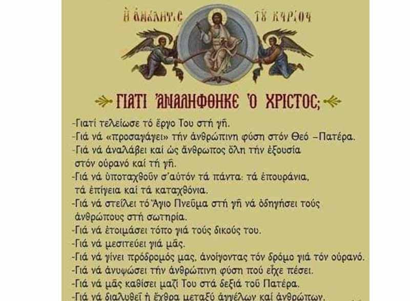 Αφιέρωμα στη Δεσποτική εορτή της Αναλήψεως του Κυριου ημών Ιησού Χριστολυ εις τους ουρανούς.