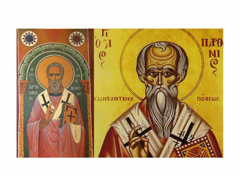 24 Μαρτίου - Προεόρτια του Ευαγγελισμού της υπεραγίας Θεοτόκου, Άγιος Αρτέμων Ιερομάρτυρας, πρεσβύτερος Λαοδικείας, Άγιος Παρθένιος ο Γ (ή Παρθενάκης) Πατριάρχης Κωνσταντινούπολης, Όσιος Αρτέμων επίσκοπος Σελευκείας της Πισιδίας, Όσιος Ζαχαρίας, Άγιοι Οκτώ Μάρτυρες οι εν Καισαρεία της Παλαιστίνης, Όσιος Μαρτίνος ο Θηβαίος, Άγιοι Ρωμύλος και Σεκούνδος οι αυτάδελφοι Μάρτυρες, Όσιος Αβραάμ ο εν τω όρει Λάτρω ασκήσας, Όσιος Ζαχαρίας ο εν τη Λαύρα του Κιέβου ασκήσας, Άγιοι Πέτρος και Στέφανος οι Μάρτυρες, Σύναξη της Υπεραγίας Θεοτόκου του Όρους του Συννέφου εν Τβερ της Ρωσίας, Ανάμνηση Θαύματος εν τη Λαύρα των Σπηλαίων του Κιέβου και Όσιος Στέφανος ο Ξυλινίτης