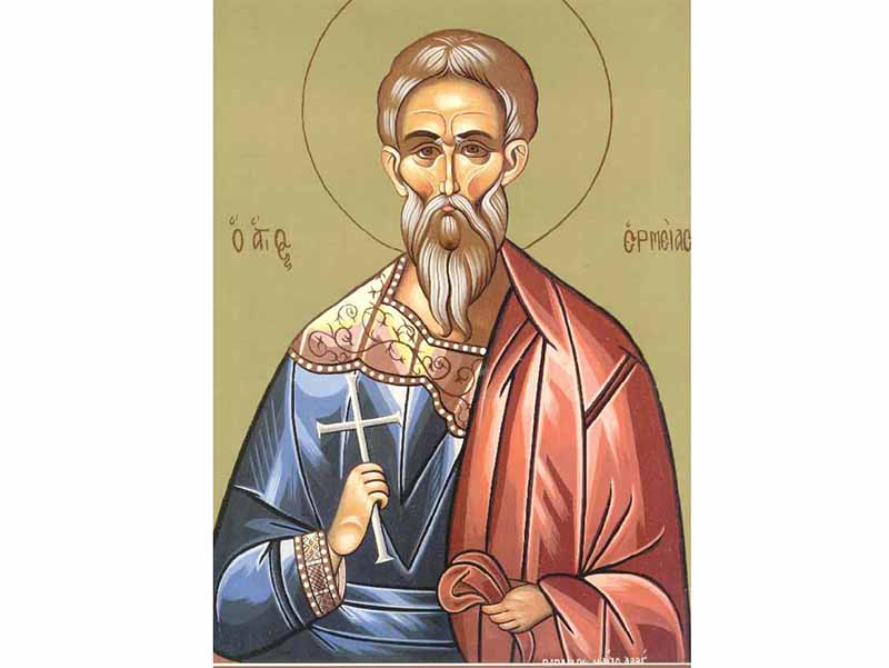 Ο Άγιος Μάρτυς Ερμείας, ζούσε στα Κόμανα της Καππαδοκίας την εποχή του αυτοκράτορα των Ρωμαίων Αντωνίνου Πίου. Είχε από νεαρή ηλικία ενταχθεί στα στρατεύματα του Καίσαρα και γρήγορα ξεχώρισε για την γενναιότητα, την ανδρεία και το αγωνιστικό του φρόνημα, τα οποία αντλούσε από την πίστη του στον Ιησού Χριστό.