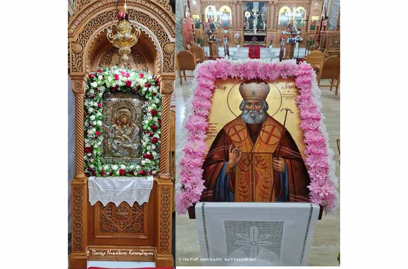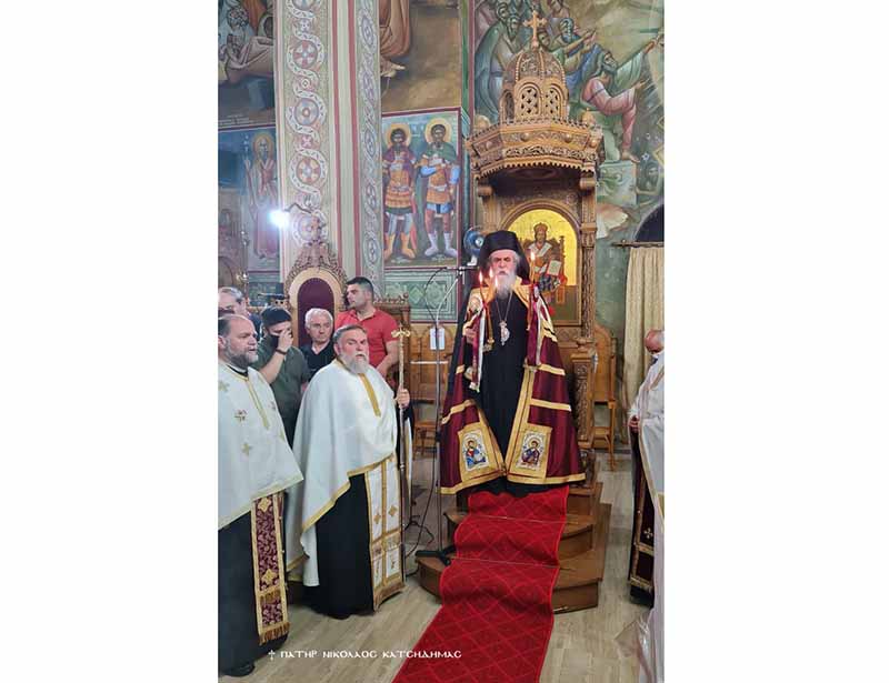 Την παραμονή της εορτής τελέσθηκε ο Μέγας Πανηγυρικός Αρχιερατικός Εσπερινός μετ’ αρτοκλασιών και θείου κηρύγματος υπό του Θεοφιλεστάτου Επισκόπου Ωλένης κ.κ. Αθανασίου, πλαισιωμένου υπό των Αιδεσ. π. Γρηγορίου Πάπαρη, π. Αθανασίου Στεργιοπούλου, π. Νικολάου Κατσηδήμα, π. Νεκταρίου Συμεωνίδη, π. Παναγιώτου Κλουκίνα και του οικείου Εφημερίου π. Παντελέημονος Παπαηλιού. Ανήμερα της εορτής τελέσθηκε η Πανηγυρική Θεία Λειτουργία μετ’ αρτοκλασιών υπό των Αιδεσ. π. Παναγιώτου Κλουκίνα και π. Παντελήμονος Παπαηλιού. Τους Ιερούς Ύμνους απέδωσε εξαίσια και κατανυκτικά, χορωδία αποτελούμενη από καλλικέλαδους Ιεροψάλτες και μαθητές της Σχολής Βυζαντινής Μουσικής της Ιεράς Μητροπόλεώς μας υπό την διεύθυνση του κ. Γεωργίου Παπαηλιού, Καθηγητού Βυζαντινής Μουσικής στην ως άνω Σχολή.