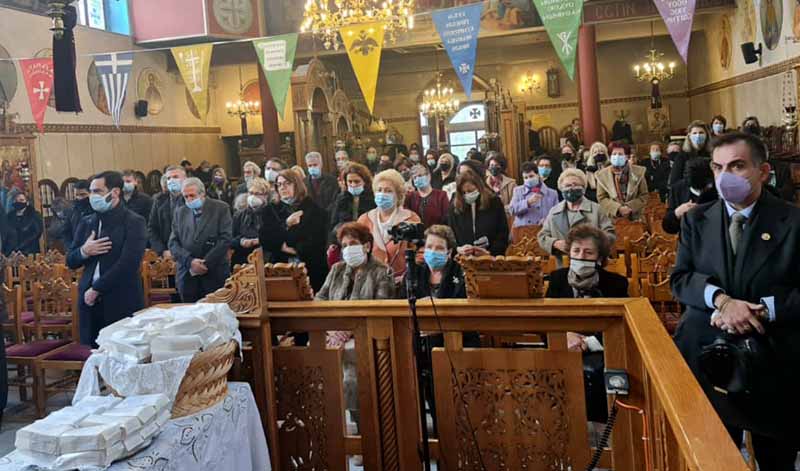Την παραμονή της εορτής τελέσθηκε ο Αναστάσιμος Μέγας Πανηγυρικός Εσπερινός μετ’ αρτοκλασιών και Θείου Κηρύγματος, υπό του Θεοφιλεστάτου Επισκόπου Ωλένης κ.κ. Αθανασίου, με την φιλάδελφη συμμετοχή των Αιδεσιμoτάτων π. Γρηγορίου Πάπαρη, π. Βασιλείου Λαγκαδινού, π. Παναγιώτου Κλουκίνα, π. Δημητρίου Ηλιοπούλου και του οικείου Εφημερίου π. Νικολάου Κατσηδήμα. Την κυρία ημέρα της εορτής τελέσθηκε η ακολουθία του Όρθρου και εν συνεχεία η Αναστάσιμη Πανηγυρική Θεία Λειτουργία μετά Θείου Κηρύγματος υπό του Πανοσιολογιοτάτου Αρχιμανδρίτου π. Φιλαρέτου Σπανοπούλου, Ιεροκήρυκος της Ιεράς Μητροπόλεώς μας πλαισιωμένου από τον οικείο Εφημέριο. Τους ύμνους της εορτής έψαλαν μελίρρυτα οι καλλικέλαδοι Ιεροψάλτες και γνήσιοι θεράποντες της πατρώας Βυζαντινής Μουσικής κύριοι Δημήτριος Καλογερόπουλος, Λάμπρος Θεοδωρόπουλος και Βασίλειος Τσαμπούκας.