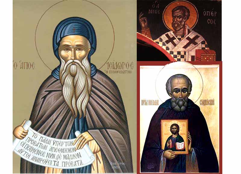 4 Φεβρουαρίου - Όσιος Ισίδωρος ο Πηλουσιώτης, Άγιος Αβράμιος ο Ιερομάρτυρας Επίσκοπος Αρβήλ της Περσίας, Άγιος Ιωσήφ ο Χαλεπλής, Όσιος Νικόλαος ο Ομολογητής ο Στουδίτης, Όσιος Ιωάννης επίσκοπος Ειρηνουπόλεως, Όσιος Ιάσιμος ο Θαυματουργός και Άγιος Θεόκτιστος, Όσιοι Ευάγριος και Σίος εκ Γεωργίας, Όσιος Νικήτας «ο εν τοις Πυθίοις», Άγιος Γεώργιος ο Πρίγκιπας, Όσιοι Αβραάμ και Κόπρις, Όσιος Κύριλλος ο Θαυματουργός και Αγία Δοσιθέα Βασίλισσα της Ρωσίας