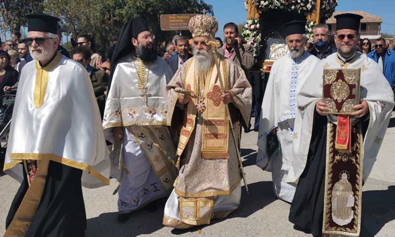 Την Αναστάσιμη Πανηγυρική Θεία Λειτουργία, πλαισιούμενος υπό του Ιεροκήρυκος της Ιεράς Μητροπόλεώς μας Πανοσιολογιοτάτου Αρχιμανδρίτου π. Φιλαρέτου Σπανοπούλου και των Αιδεσ. π. Χαραλάμπους Δέρβου, π. Ηλία Κουμπαρούλη, π. Κωνσταντίνου Θεοδωρόπουλου και π. Γεωργίου Χαρδαβέλα, τέλεσε ο Σεβασμιώτατος Μητροπολίτης μας κ. Γερμανός, ο οποίος παράλληλα κήρυξε επίκαιρα και εποικοδομητικά τον Θείο Λόγο. Κατά την λιτάνευση της Ιερής εικόνας προέστη ο Θεοφιλέστατος Επίσκοπος Ωλένης κ. Αθανάσιος, η οποία μεταφέρθηκε στον νεοαναγειρόμενο Ιερό Ναό των Αγίων Ισαποστόλων Κωνσταντίνου και Ελένης, με την συνοδεία των Φιλαρμονικών Γαστούνης και Βαρθολομιού, παρουσία των Πολιτικών αρχών, με επικεφαλής τον αξιότιμο Δήμαρχο Πηνειού κ. Ανδρέα Μαρίνο, τους Βουλευτές κ. Ανδρέα Νικολακόπουλο, κ. Θεοδώρα-Διονυσία Αυγερινοπούλου, κ. Μιχάλη Κατρίνη και κ. Διονύσιο Καλαματιανό, καθώς επίσης και πλήθους ευλαβών και φιλεόρτων Χριστιανών της πόλης της Γαστούνης και της ευρύτερης περιοχής του Δήμου Πηνειού.