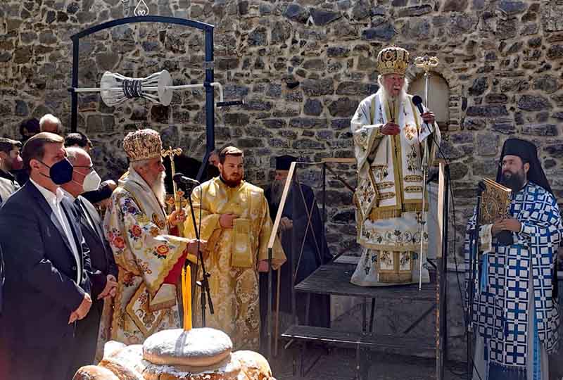 Την παραμονή της εορτής Δευτέρα 9 Μαΐου, τελέσθη ο υπαίθριος Μέγας Πανηγυρικός Αρχιερατικός Εσπερινός μετ’ αρτοκλασιών και Θείου Κηρύγματος υπό του Θεοφιλεστάτου Επισκόπου Ωλένης κ. Αθανασίου, ενώ το μεσονύκτιο στον καθολικό της Μονής ακολούθησε Ιερά Αγρυπνία. Την κυρία ημέρα της εορτής Τρίτη 10 Μαΐου, τελέσθηκε η ακολουθία του Όρθρου και η υπαίθρια Δισαρχιερατική Πανηγυρική Θεία Λειτουργία, υπό του Σεβασμιωτάτου Μητροπολίτου μας κ. Γερμανού ο οποίος κήρυξε και τον Θείον Λόγον, συμπαραστατούμενος υπό του Θεοφιλεστάτου Επισκόπου Ωλένης κ. Αθανασίου και άλλων Κληρικών. Μετά το πέρας αυτής πραγματοποιήθηκε η λιτάνευση της χαριτόβρυτης και θαυματουργής εικόνας, ενώ εψάλλη και η κατά παράδοση αρτοκλασία στις βρύσες της Ιεράς Μονής. Στο τέλος ο Σεπτός μας Ποιμενάρχης κ. Γερμανός, ευχαρίστησε για την τιμητική τους παρουσία τους εκπροσώπους των Πολιτικών και Στρατιωτικών αρχών καθώς επίσης και των Σωμάτων ασφαλείας από την Αχαΐα και την Ηλεία, αλλά και το πλήθος των πιστών, για την υποδειγματική συμμετοχή τους στις λατρευτικές αυτές εκδηλώσεις. Προσφέρθηκε καφές και γεύμα, στο παραδοσιακό αρχονταρίκι της Ιεράς Μονής. Οι θρησκευτικές εκδηλώσεις έλαβαν τέλος με τον μεθέορτο Εσπερινό και την Ιερά Παράκληση, χοροστατούντος και ομιλούντος του Θεοφιλεστάτου Επισκόπου Ωλένης κ. Αθανασίου. Τα εόρτια υμνογραφικά μελωδήματα κατά τις λατρευτικές εκδηλώσεις, απέδωσε θαυμάσια χορωδία Ιεροψαλτών της ευρύτερης περιοχής, υπό την διεύθυνση του Πρωτοψάλτου της Ιεράς Μονής κ. Δημητρίου Θανόπουλου, καθηγητού της Σχολής Βυζαντινής Μουσικής της Ιεράς Μητροπόλεώς μας.