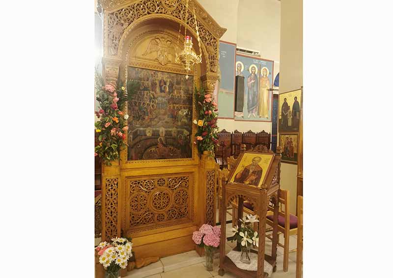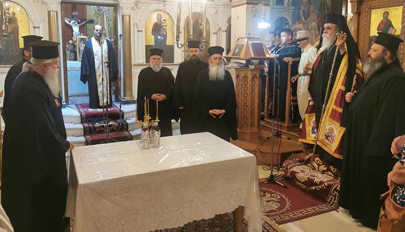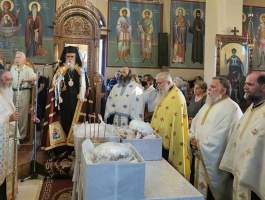 Μετά την ευλόγηση των άρτων ο Θεοφιλέστατος κήρυξε τον Θείον Λόγον, αναφερόμενος στην σημασία της εορτής που είναι μία από τις σπουδαιότερες της Εκκλησίας μας, τονίζοντας μεταξύ άλλων ότι είναι η σφραγίδα της εορταστικής αυτής της Εκκλησιαστικής περιόδου, διότι μας παρουσιάζει τους καρπούς του Αγίου Πνεύματος τους Αγίους Πάντες, τα κοσμήματα αλλά και το καύχημα της Ορθόδοξης Εκκλησίας μας. Την κυρία ημέρα της εορτής Κυριακή 19 Ιουνίου, χοροστάτησε στον Όρθρο και ιερούργησε το μυστήριο της Θείας Ευχαριστίας, ο Σεβασμιώτατος Μητροπολίτης μας κ.κ. Γερμανός, ο οποίος κήρυξε και τον Θείον Λόγον, πλαισιούμενος από τους ευλαβείς Ιερείς π. Ηλία Παπαγγελή π. Κωνσταντίνο Παπαδημητρίου και π. Ρωμανό Καββαθά. Τα Ιερά ψαλσίματα απέδωσαν υπέροχα οι καλλικέλαδοι Ιεροψάλτες του Ναού Μαρίνος Ηλιόπουλος και Μιχαήλ Ηλιόπουλος.