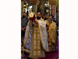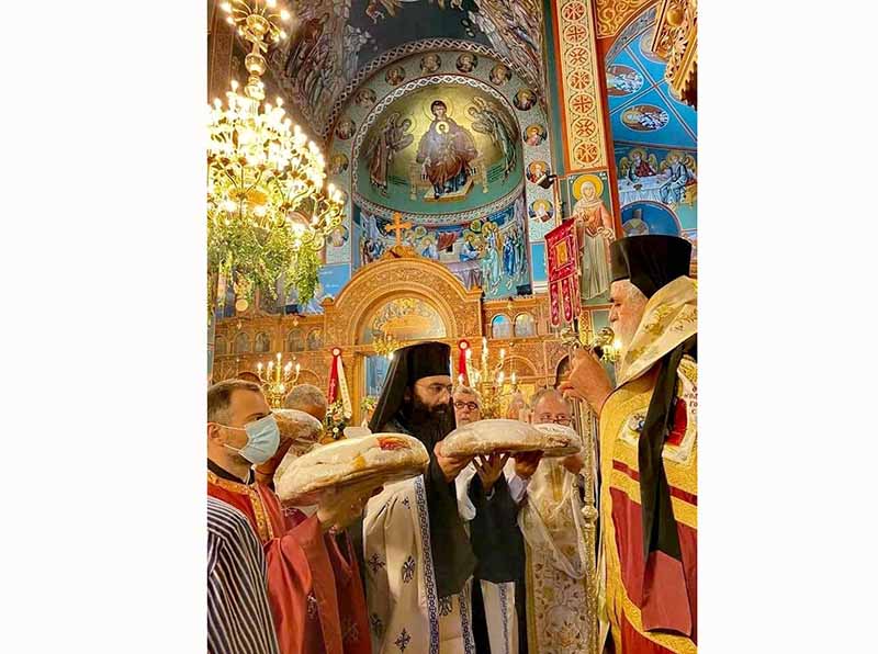 Κατά τον Μέγα Πανηγυρικό Αρχιερατικό Εσπερινό χοροστάτησε, ευλόγησε τους προσφερθέντες άρτους και ομίλησε ο Θεοφιλέστατος Επίσκοπος Ωλένης κ.κ. Αθανάσιος, συνεπικουρούμενος από τον Αρχιερατικό Επίτροπο Ανδραβίδας-Κυλλήνης Πανοσιολογιότατο Αρχιμανδρίτη π. Κύριλλο Χατζηχαραλάμπους και από Ιερείς της ευρύτερης περιοχής, ενώ ακολούθησε η λιτάνευση της Ιερής Εικόνας. Την Πανηγυρική Θεία Λειτουργία μετ’ αρτοκλασιών και Θείου κηρύγματος, τέλεσε ο Πανοσιολογιότατος Αρχιμανδρίτης π. Χριστοφόρος Κωλέττης, Ιεροκήρυκας της Ιεράς Μητροπόλεώς μας και Αρχιερατικός Επίτροπος Βουπρασίας, πλαισιούμενος από χορεία Ιερέων, ο οποίος κήρυξε και το Θείο λόγο.