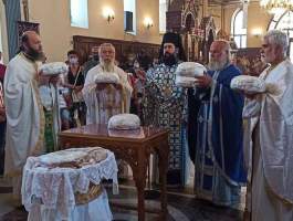 Οι Θρησκευτικές εκδηλώσεις με τις ευλογίες του Σεπτού μας Ποιμενάρχου κ.κ. Γερμανού, έλαβαν χώρα στον ομώνυμο και περικαλλή Ιερό Ναό της εορταζομένης Αγίας και άρχισαν την παραμονή της εορτής, με την τέλεση του Πανηγυρικού Αρχιερατικού Εσπερινού μετ’ αρτοκλασιών και Θείου Κηρύγματος υπό του Θεοφιλεστάτου Επισκόπου Ωλένης κ.κ. Αθανασίου, ο οποίος πλαισιωνόταν από τους Αιδεσ. Παντελεήμων Παπαηλιού π. Χαράλαμπο Αθανασόπουλο και π. Βασίλειο Λαγκαδινό.
