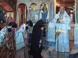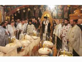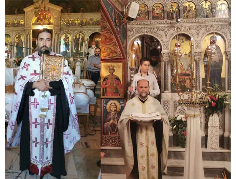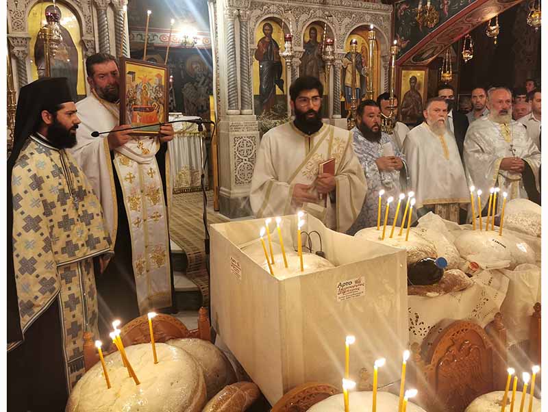 Την παραμονή της εορτής τον Μέγα Αρχιερατικό Πανηγυρικό Εσπερινό τέλεσε ο Σεβασμιώτατος Μητροπολίτης μας κ.κ. Γερμανός ευλογώντας τους προσφερθέντες άρτους και ομιλήσας καταλλήλως, πλαισιούμενος από τον Πανοσιολογιότατο Αρχιμανδρίτη και Προϊστάμενο της Θρησκευτικής Υπηρεσίας της Ελληνικής Αστυνομίας π. Αλέξιο Κουρτέση, εξ Ηλείας καταγόμενον και τους Αιδεσ. π. Χαράλαμπο Αθανασόπουλο, π. Παναγιώτη Παναγόπουλο, π. Αθανάσιο Στεργιόπουλο, π. Γρηγόριο Πάπαρη, π. Διονύσιο Μιχαλόπουλο, π. Νικόλαο Κατσηδήμα, π. Αυγερινό Τσουκαλά, π. Ευστάθιο Γεωργόπουλο και τον Ιερολογιότατο Διάκονο π. Βασίλειο Σμέρο. Την Κυριώνυμη ημέρα κατά την Πανηγυρική Ευχαριστιακή Συνάξη, προέστη με την ευλογία του Σεπτού μας Ποιμενάρχου, ο εξ Ηλείας καταγόμενος Θεοφιλέστατος Επίσκοπος Ανδρούσης κ.κ. Κωνστάντιος, ορθοτομώντας παράλληλα επίκαιρα και εποικοδομητικά τον Θείον Λόγον, συμπραστατούμενος από τους Πανοσιολογιοτάτους Αρχιμανδρίτες π. Αλέξιο Κουρτέση και π. Φιλάρετο Σπανόπουλο Ιερόκηρυκα της Ιεράς Μητροπόλεώς μας, καθώς επίσης τους Αιδεσ. π. Νικόλαο Αγωγιάτη, π. Αυγερινό Τσουκαλά, π. Ευστάθιο Γεωργόπουλο και τον Ιερολογιοτάτο Διακόνο π. Βασίλειο Σμέρο.