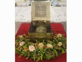 Οι λατρευτικές εκδηλώσεις έλαβαν χώρα εις τον περικαλλή και μεγαλοπρεπή Ιερό Ναό Κοιμήσεως της Θεοτόκου, όπου φυλάσσεται από το 1890 ως πολύτιμος θησαυρός τμήμα της κάρας του Αγίου Μάμαντα. Το Ιερό αυτό λείψανο αποτελεί μία αέναο πηγή αγιασμού και ευλογίας για τον ευσεβή λαό αυτής της ενορίας, καθώς επίσης και για την ευρύτερη περιοχή του Κάστρου-Κυλλήνης, όπου σύμφωνα με την τοπική παράδοση αναφέρονται πολλά θαύματα του εν λόγω Αγίου, ο οποίος μαρτύρησε για την πίστη του σε νεαρή ηλικία μόλις 15 ετών.