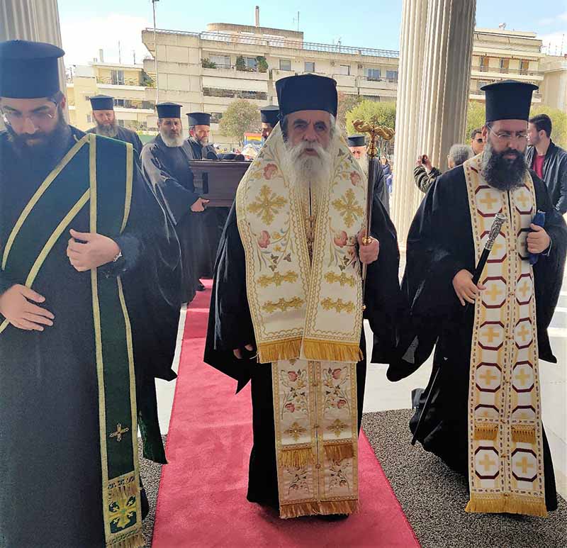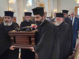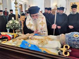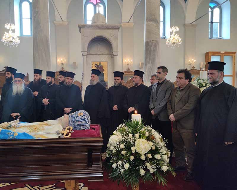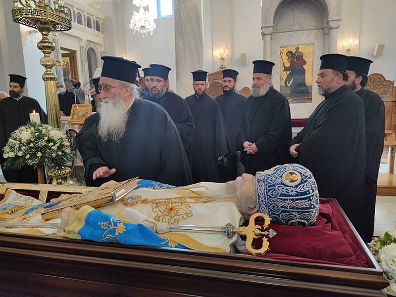 Ο Μητροπολιτικός Ναός θα παραμείνη ανοικτός καθ' όλην την διάρκεια της ημέρας και της νυκτός και θα τελούνται ακολουθίες και αναγνώσματα. Σήμερα το απόγευμα και ώρα 5 μ.μ. θα τελεσθή Αρχιερατικός Εσπερινός χοροστατούντος του Σεβ. Μητροπολίτου Ηλείας κ. ΑΘΑΝΑΣΙΟΥ. Ώρα 11 μ.μ. θα τελεσθή ο Όρθρος και νυκτερινή Θεία Λειτουργία. Αύριο Πέμπτη και ώρα 7 έως 10.30 π.μ. θα τελεσθή ο Όρθρος και Αρχιερατική θεία Λειτουργία υπό του Σεβασμιωτάτου Μητροπολίτου μας κ. ΑΘΑΝΑΣΙΟΥ. Ώρα 1 μ.μ. θα τελεσθή η Εξόδιος ακολουθία υπό του Μακαριωτάτου Αρχιεπισκόπου Αθηνών και πάσης Ελλάδος κ.κ. ΙΕΡΩΝΥΜΟΥ με την συμμετοχήν πλειάδος Αρχιερέων. Μετά το πέρας της Εξοδίου ακολουθίας θα γίνει ο ενταφιασμός της σορού εις Α' Κοιμητήριο του Πύργου, παραπλεύρως του Μακαριστού προκατόχου του αλλά και πνευματικού του Πατρός Γερμανού (Γκούμα).