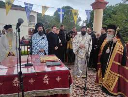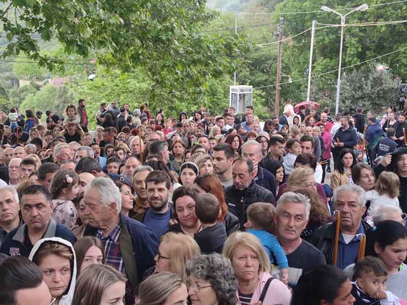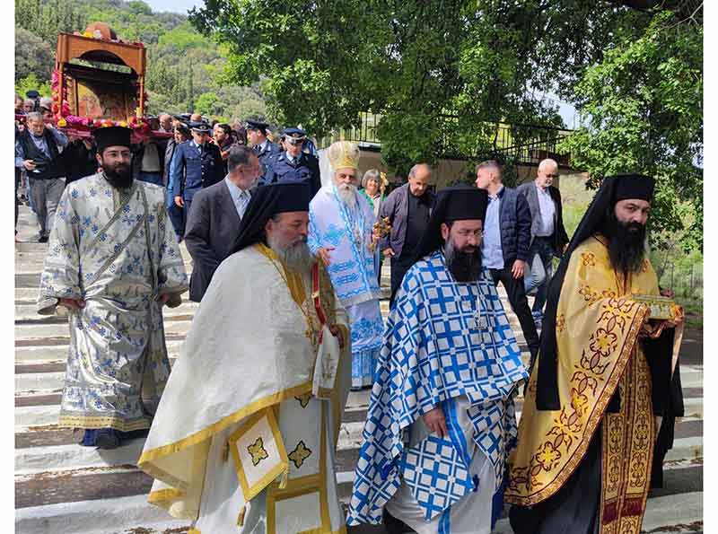 Την παραμονή της εορτής Tρίτη 9 Μαΐου, τελέσθηκε στην υπαίθρια πανηγυρίστρα ο Μέγας Αρχιερατικός Πανηγυρικός Εσπερινός, μετ΄ αρτοκλασιών χοροστατούντος του Σεβασμιωτάτου Μητροπολίτου μας κ.κ. Αθανασίου ο οποίος κήρυξε εποικοδομητικά και επίκαιρα τον Θείον Λόγον, συμπαραστατούμενος υπό του Πανοσιολογιοτάτου Αρχιμανδρίτου π. Φιλαρέτου Σπανοπούλου Πρωτοσυγκέλου της Ιεράς Μητροπόλεως, του Πανοσιολογιοτάτου Αρχιμανδρίτου π. Κυρίλλου Χατζηχαραλάμπους, καθώς επίσης των Αιδεσιμολογιοτάτων π. Ανδρέου Γεωργακοπούλου, π. Ιωάννου Πανουτσακοπούλου και του Ιερολογιοτάτου Διακόνου π. Βασιλείου Σμέρου, ενώ στην συνεχεία στον Ιερό Ναό του Προσκυνήματος, ακολούθησε ολονύκτιος Ιερά αγρυπνία.