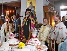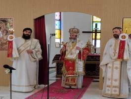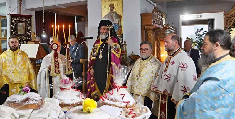 με του οποίου τις ευλογίες το Σάββατο 20 Μαΐου το απόγευμα προέστη του Αναστάσιμου Πανηγυρικού Εσπερινού εις τον εορτάζοντα νεοανεγειρόμενο Ιερό Ναό Αγίων Κων/νου και Ελένης Γαστούνης, πλαισιούμενος υπό του Ιερομονάχου π. Χρυσάνθου Χριστοφή και των Αιδεσ. π. Χαραλάμπους Δέρβου, π. Ανδρέα Καρνέζου, π. Κωνσταντίνου Θεοδωρόπουλου, π. Νικολάου Κατσηδήμα, π. Γεωργίου Χαρδαβέλα καθώς επίσης και του οικείου εφημερίου π. Ηλία Κουμπαρούλη. Την Κυριακή προέστη της Αναστάσιμης Πανηγυρικής Θείας Λειτουργίας εις τον εορτάζοντα νεοανεγειρόμενο Ι. Ν. Αγ. Κων/νου και Ελένης Πύργου επί της οδού Αλφειού, συμπαραστατούμενος υπό του Αιδεσιμολογιοτάτου π. Παντελεήμονος Παπαηλιού και του Ιερολογιοτάτου Διακόνου π. Βασιλείου Σμέρου. Ακολούθως μετέβη εις το Α΄ Κοιμητήριο Πύργου και τέλεσε Τρισάγιο υπέρ αναπαύσεως της ψυχής του Μακαριστού Ποιμενάρχου μας κυρού Γερμανού του Β’, ως ένδειξη υιϊκής αγάπης και σεβασμού. Ο Θεοφιλέστατος ορθοτομώντας με θεολογική ενάργεια και πάντα εποικοδομητικά τον Θείον Λόγον εις τους προαναφερόμενους Ιερούς Ναούς, αφού εξέφρασε τις θερμές του ευχαριστίες εις τον Μακαριώτατο Αρχιεπίσκοπο Κύπρο κ.κ. Γεώργιο για την κανονική άδεια καθώς επίσης και εις τον Σεπτό μας Ποιμενάρχη κ.κ. Αθανάσιο για την ευλογητή φιλοξενία του, ανέφερε μεταξύ πολλών άλλων ότι: «ο εκ γενετής Τυφλός της Ευαγγελικής Περικοπής, είδε την δόξα στο πρόσωπο του Θεανθρώπου, ενώ ο Απόστολος Παύλος της Αποστολικής Περικοπής, έζησε την προσωπική του Πεντηκοστή στο δρόμο για την Δαμασκό. Ο Μέγας Κωνσταντίνος ο Ισαπόστολος έζησε το θαύμα της φανέρωσης του Τιμίου Σταυρού, αφού η Μητέρα του η Αγία Ελένη με πίστη και ταπείνωση, επισκέφθηκε την Αγία Γη αναζητώντας τον Τίμιο και Ζωοποιό Σταυρό του Κυρίου μας. Επιστρέφοντας δε από τα Ιεροσόλυμα πέρασε και από την Κύπρο, όπου άφησε τεμάχια του Τιμίου Σταυρού και οικοδόμησε Ιερούς Ναούς και την Ιερά Μονή Σταυροβουνίου».