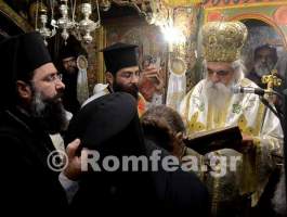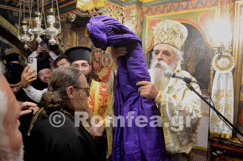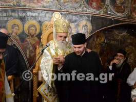 Μετά το πέρας της Θείας Λειτουργίας ο Σεβασμιώτατος προέβει στην ενθρόνιση του Νέου Ηγουμένου της Ιεράς Μονής Παναγίας Χρυσοπηγής Άνω Δίβρης Αρχιμ. Ιωακείμ Μιχαλόπουλου.