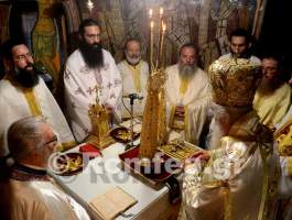 Κατά τη διάρκεια της Θείας Λειτουργίας ο Σεβασμιώτατος τέλεσε τη ρασοευχή στον νέο δόκιμο μοναχό Χαράλαμπο Χυνοφώτη.