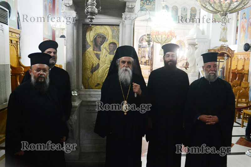 Ο Σεβασμιώτατος πλαισιούμενος απο τον εφημέριο της ενορίας π. Θεόδωρο Πανουτσόπουλο, τον εφημέριο του Ιερού Ναού Αγίου Δημήτριου Λεχαινών π. Γεώργιο Κάνδυλα, και τον διάκονο π. Βασίλειο Σμέρο, χοροστάτησε στην παράκληση της Παναγίας η οποία δεκάδες χρόνια πλέον τελείται ενώπιον της Ιεράς εικόνος της Θεοτόκου της επονομαζομένης " Λεχαινιωτίσσης".