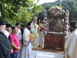 Μετά το πέρας της θείας λειτουργίας τελέστηκε λιτανεία της Ιεράς εικόνας της Θεοτόκου η οποία αναγράφει "Η Κυρία Βλαχαίρνα"