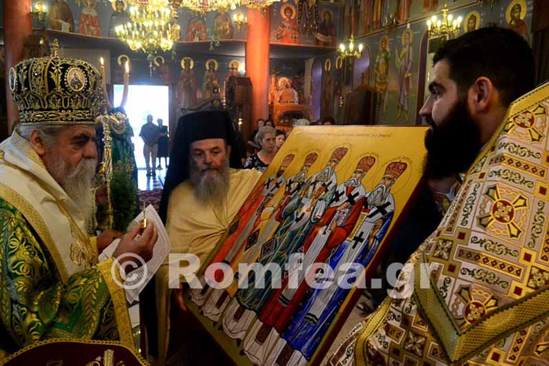Για τον λόγο αυτο φιλοτεχνήθηκε ιερά και πάνσεπτος εικόνα των εν τη Μικρασιατική Καταστροφή Εθνομαρτύρων Αγίων Αρχιερέων, Χρυσοστόμου Σμύρνης, Κυδωνιών Γρηγορίου, Μοσχονησίων Αμβροσίου, Ικονίου Προκοπίου και Ζήλων Ευθυμίου. Κατά την τέλεση της Αρχιερατικής Θείας Λειτουργίας ο Σεβασμιώτατος καθιέρωσε την ιερά εικόνα.
