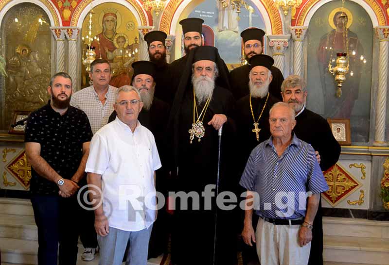 Τον Σεβασμιώτατο πλαισίωσαν ο αρχιερατικός επίτροπος Βάρδας Αρχιμανδρίτης Χριστοφόρος Κωλέτης, ο πρωτοπρεσβύτερος π. Παύλος Παυλίδης εκ της Ιεράς Μητροπόλεως Πατρών, ο πρωτοπρεσβύτερος π. Νικόλαος Γουρδούπης στρατηγός, επιτ. Αρχηγός του θρησκευτικού Τομέα ΓΕΕΘΑ, ο πρεσβύτερος π. Στέφανος Νίτσος εφημέριος του Ιερού Ναού Αγίου Πέτρου Νέας Μανωλάδος, ο οικείος εφημέριος π. Ιωάννης Πανουτσακόπουλος, και ο διάκονος π. Βασίλειος Σμέρος.
